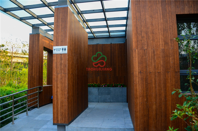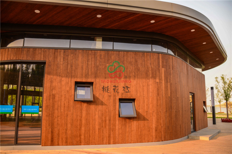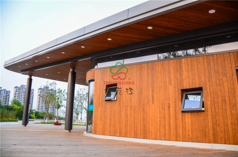 該公園東側為海濱高速公路,西側為濱海旅游區(qū)辦公區(qū)域,北臨海博路,南至規(guī)劃海旭道,是從城市空間到海邊的過渡型景觀。項目的建設是在尊重歷史和現(xiàn)實條件基礎上,結合先進的生態(tài)建設理念,大面積運用了桃花江竹材科技的環(huán)保竹材作為主體裝飾材料,公園內的主體建筑,采用桃花江竹材科技的全竹裝飾來裝潢,高炭防腐竹材做外墻和吊頂裝飾,色澤明亮,渾然一體,既現(xiàn)代又傳統(tǒng)的竹材裝飾風格為公園營造自然、郊野景觀氛圍,為市民提供一個全新的休閑娛樂場所。