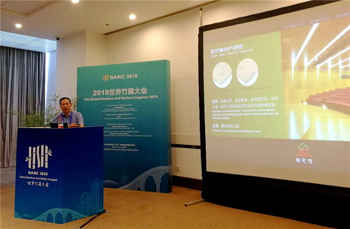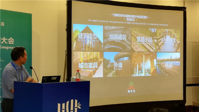 薛董以《竹建筑材料及其在城鎮(zhèn)化過程中的應用潛力》為題,圍繞中國工業(yè)化以來企業(yè)運用現(xiàn)代工藝技術及設備研發(fā)新的竹材產(chǎn)品,闡述在我國城鎮(zhèn)化建設過程中竹材新產(chǎn)品在室內(nèi)外的運用以及未來的巨大潛力,結(jié)合豐富的案例展示了中國竹材產(chǎn)品的應用成果及竹材應用的發(fā)展趨勢。薛董的演講得到了來自世界各地的科研院所、高校、企業(yè)界的100多位代表的廣泛關注。